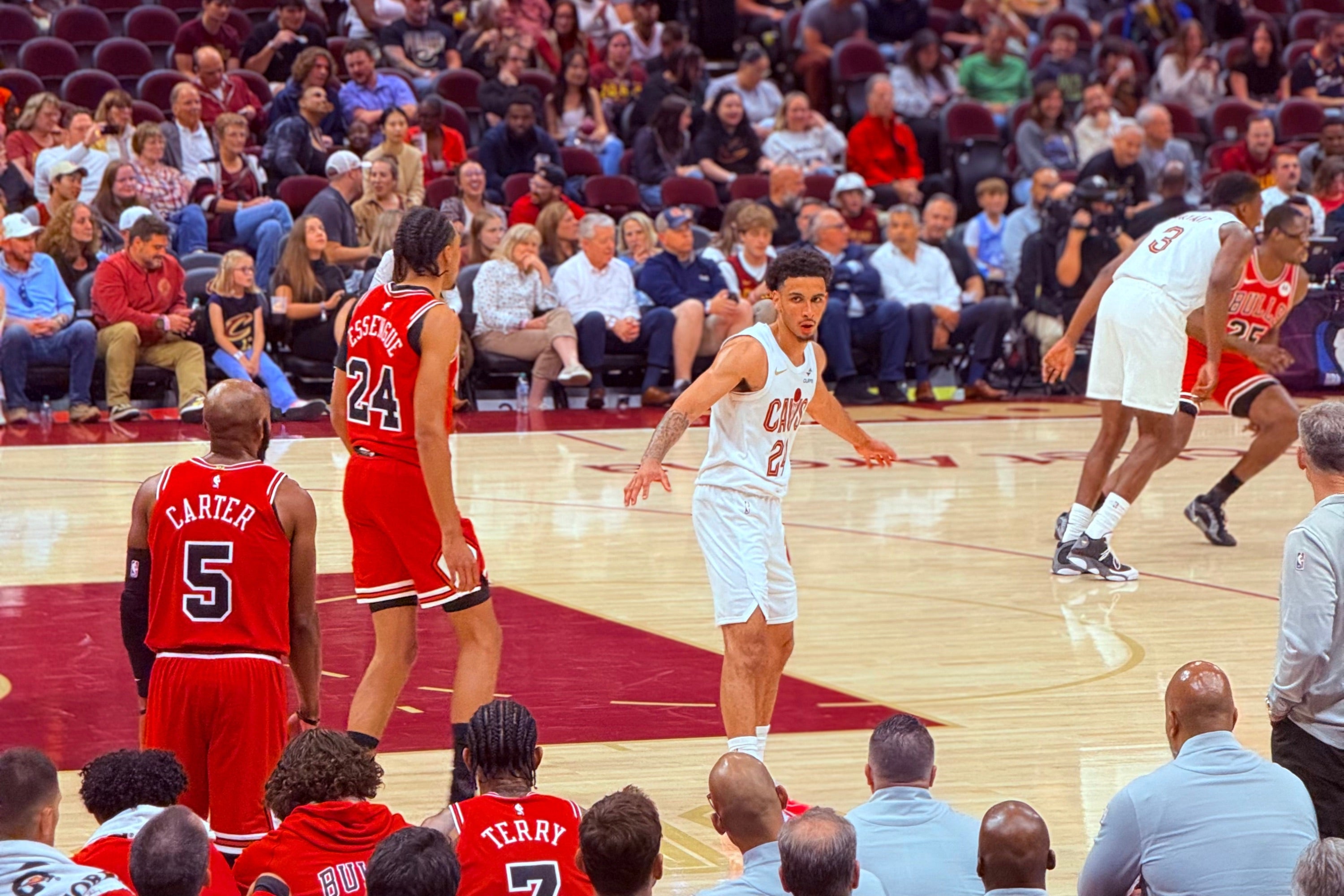 The Chicago Bulls narrowly defeated the Cleveland Cavaliers 118-117 in their first preseason matchup at Rocket Mortgage Fieldhouse, Tuesday, Oct. 7. Jevon Carter’s last second fast break layup secured the win for the visiting Bulls.