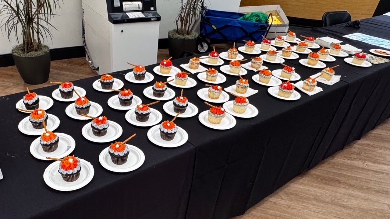 Students attending Monday's opening event received a ticket they could exchange for a campfire-style cupcakes.